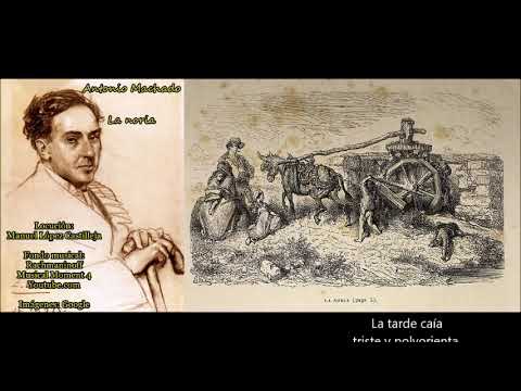 El poeta escribió estos versos en su primera época, su etapa más modernista. Se encuentra en el poemario Soledades, galerías y otros poemas. Está lleno de melancolía. En él, el poeta habla de la monotonía de la vida simbolizada en esta pobre mula que da vueltas y vueltas sin ir a ninguna parte para sacar agua de la noria. La mula tiene el consuelo de escuchar el agua, y eso le permite seguir soñando.